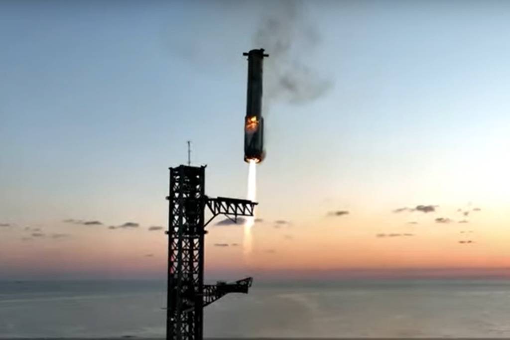 Em uma janela magra de apenas 30 minutos, a SpaceX conseguiu neste domingo (13) realizar mais um lançamento de seu superfoguete Starship —o quinto da série— e, pela primeira vez, recuperou o primeiro estágio num inédito pouso na própria plataforma de lançamento, em Starbase, instalação da companhia americana em Boca Chica, no Texas.