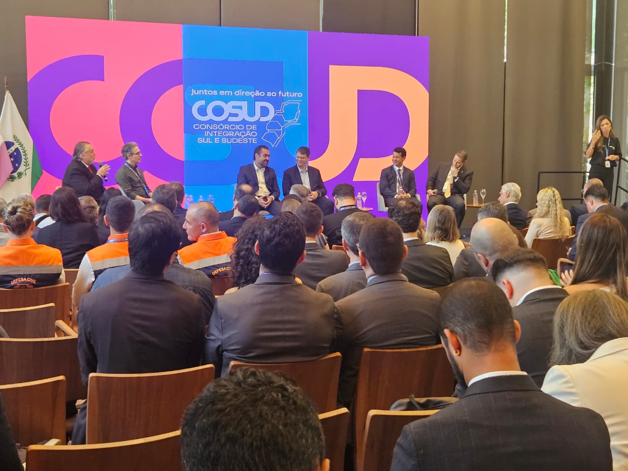 A Casa Firjan, em Botafogo, abriu as portas para mais um dia do Consórcio de Integração Sul Sudeste (Cosud), nesta sexta-feira (05). O evento reuniu governantes de sete estados para discutir políticas públicas voltadas para educação, tecnologia, inovação e, principalmente, segurança. A presidência foi encabeçada pelo governador Cláudio Castro (PL).