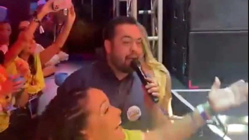O governador do Rio de Janeiro, Cláudio Castro (PL), soltou a voz com o cantor Alexandre Pires na Sapucaí na madrugada deste domingo (24.abr.2022). Alexandre Pires cantava a música “Domingo” quando passou o microfone para Castro, no camarote Arpoador na apresentação do desfile das escolas do Grupo Especial no Rio de Janeiro.