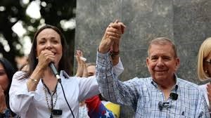 “Nossa luta continua, e não descansaremos até que a vontade popular seja respeitada”, disse o candidato Edmundo González, (com Corina na foto) em um breve discurso.