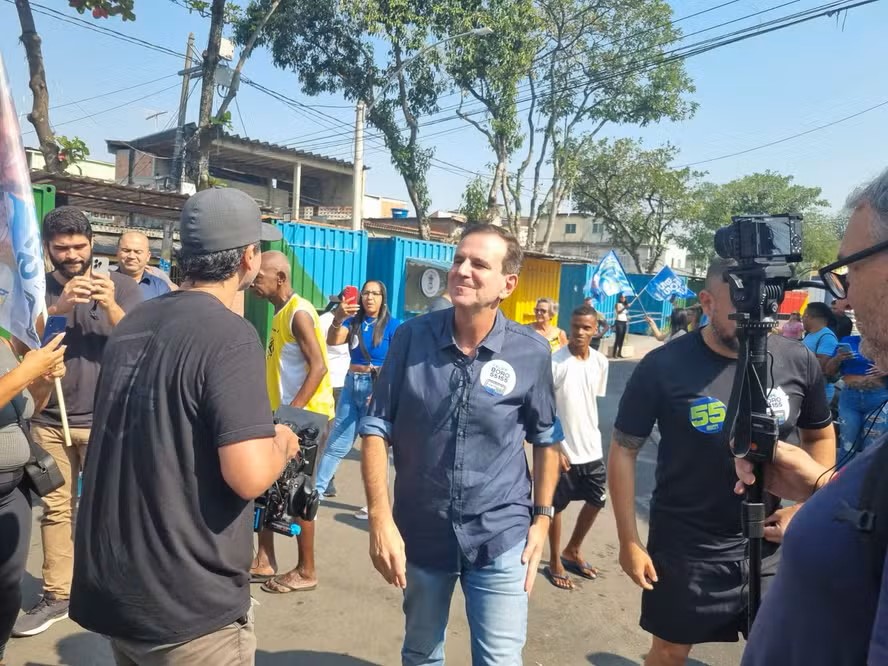 Assim como na agenda de sábado, Paes estava acompanhado de secretários, como Guilherme Schleder, e do candidato a vice Eduardo Cavaliere (PSD).