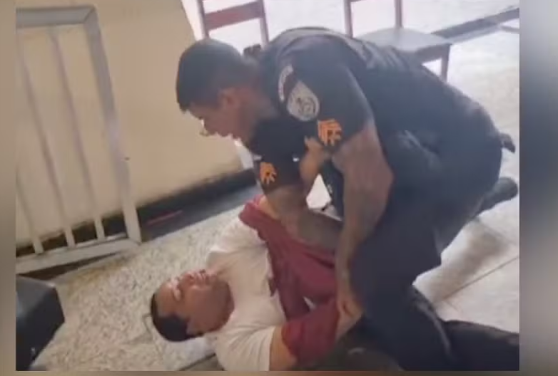 Nas imagens, o porteiro aparece no chão, impedido de se mexer pelo policial. Durante o confronto, ele protesta: “Eu estou na minha área de trabalho.” Um sócio do clube, que grava o episódio, afirma ser testemunha de que o policial iniciou a agressão. Em resposta, o PM solicita apoio de um colega, identificado como Rodrigues, e justifica: “Está preso. Desacatou.”