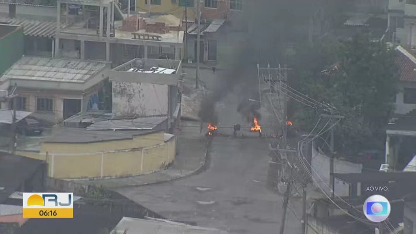Ao chegar à comunidade, policiais encontraram barricadas em chamas em algumas ruas. Bandidos costumam usar esses bloqueios para atrapalhar a circulação dos agentes durante operações.