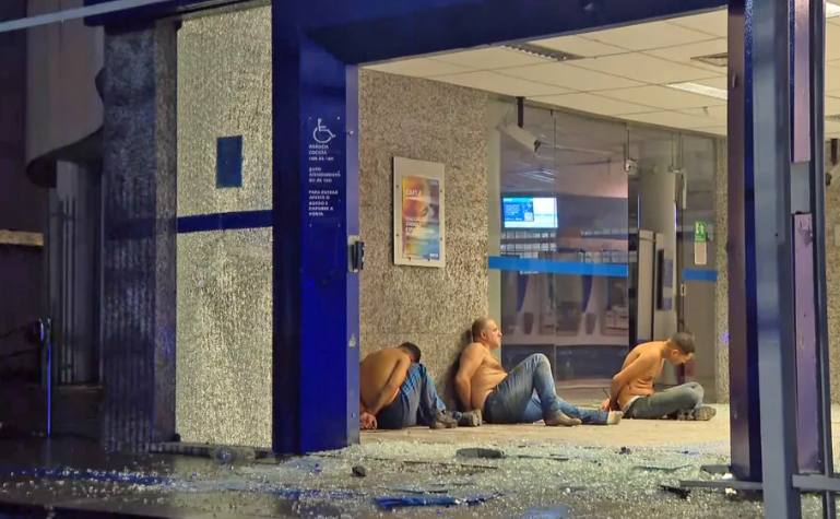 Os ladrões chegaram a detonar uma bomba, mas não conseguiram levar o dinheiro. Na fuga, o restante do bando largou explosivos na agência e roubou um carro.