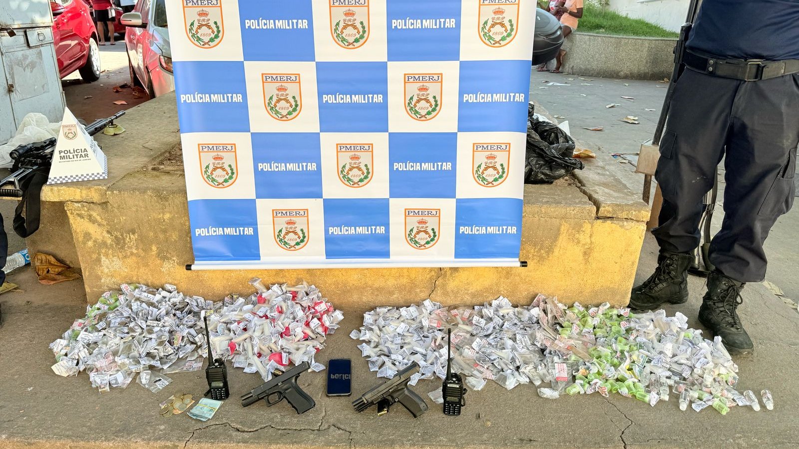Durante a ação, um trio de traficantes foi preso em flagrante. Os bandidos e o material apreendido foram levados para a 54ª DP (Belford Roxo), onde o caso foi registrado.