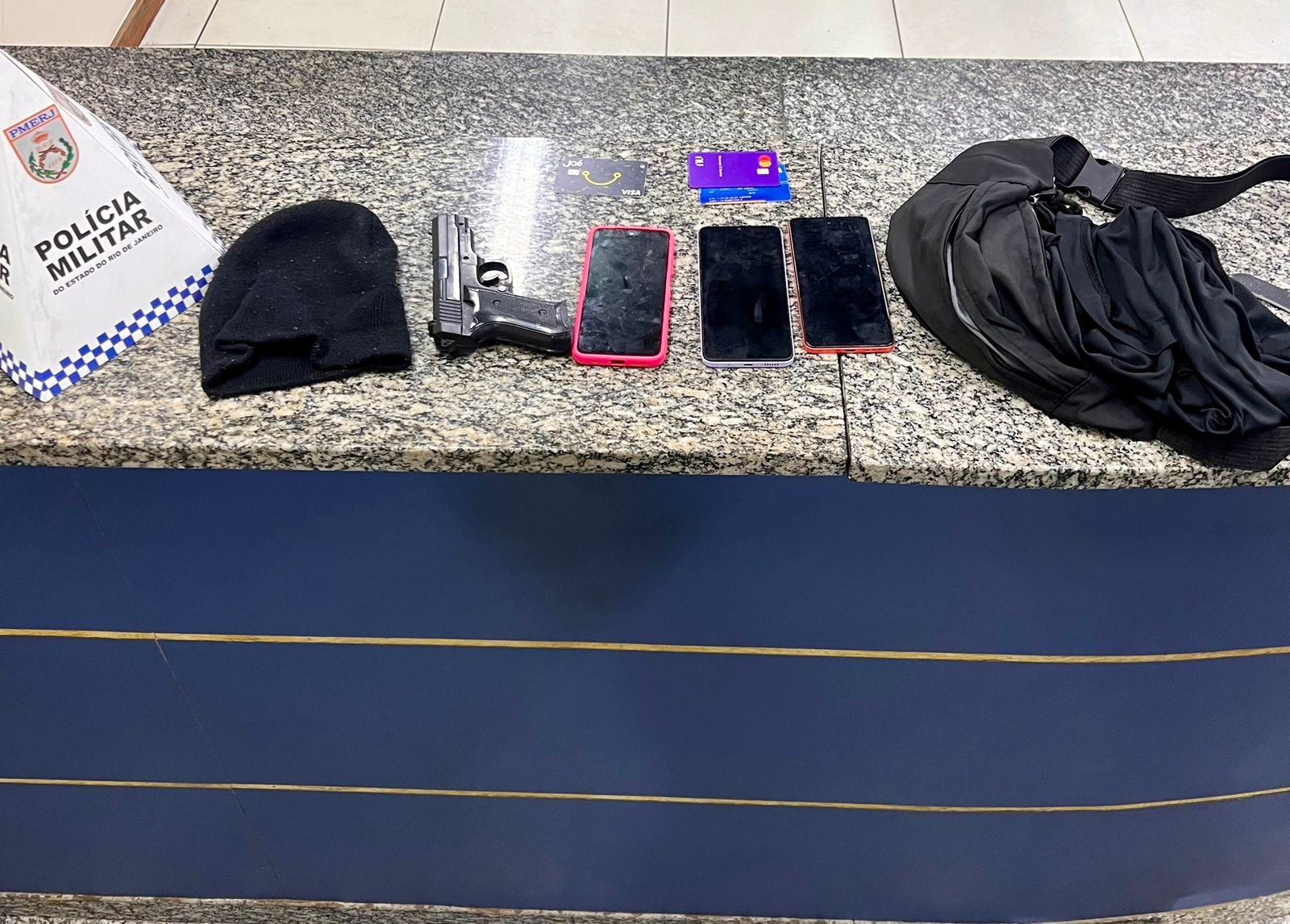 Segundo informações da Polícia Militar, os suspeitos foram localizados nas proximidades da estação de trem de Marechal Hermes, pouco tempo depois do crime. Com eles, os PMs apreenderam uma mochila, uma réplica de pistola, três celulares e cartões de passageiros.
