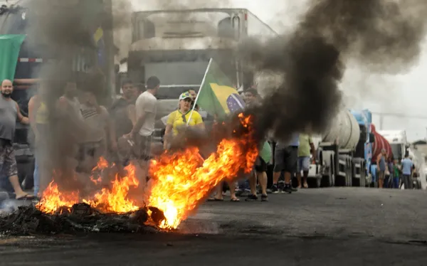 Na manhã desta terça-feira, caminhoneiros fecharam o acesso à BR-101 na altura de Itaboraí, na Região Metropolitana do Rio. Manifestantes fizeram uma barricada com pneus e atearam fogo para impedir a passagem de veículos.