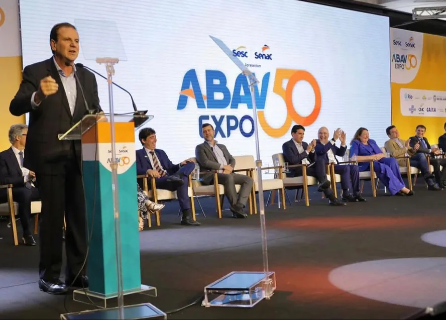 O prefeito Eduardo Paes anunciou um patrocínio de R$ 30 milhões por ano para que a Abav Expo, o maior evento de turismo da América Latina, continua na cidade nos próximos anos. Paes abriu nesta quarta-feira (27) a 50ª da Abav Expo, que voltou à cidade após 11 anos. Também estavam no palco do evento o secretário estadual de turismo, Gustavo Tutuca, o ministro do Turismo, Celso Sabino, o ministro de Portos e Aeroportos, Silvio Costa Filho, entre outros. Até a próxima sexta-feira, no Riocentro, Jacarepaguá, Zona Oeste do Rio, são esperadas 36 mil pessoas.