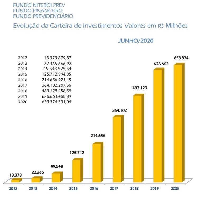 O prefeito de Niterói, Rodrigo Neves (PDT) comemorou hoje nas redes sociais os resultados obtidos na gestão e capitalização do Fundo de Previdência Municipal, o NiteróiPrev. Em 2012, quando assumiu, a instituição tinha em seu caixa parcos R$ 13 milhões. Hoje, seus cofres estão abarrotados com R$ 653 milhões. Rodrigo enfatizou a seriedade da administração dos recursos.