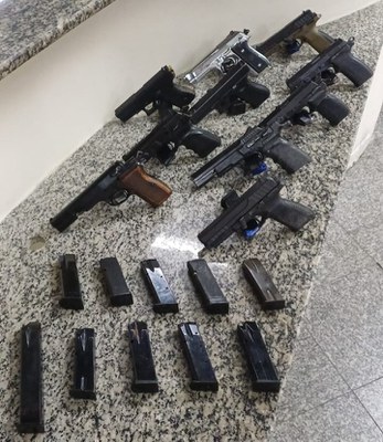 Por volta das 22h, equipes do Grupo de Operações com Cães (GOC) e do Grupo de Patrulhamento Tático (GPT/6) abordaram um motociclista no Km 169, em Jardim América. Durante a revista, com apoio de cães farejadores, os policiais localizaram 10 pistolas de marcas diversas — Glock, Taurus, Bersa e Kor — e 20 carregadores escondidos dentro do tanque de combustível, embalados em sacos plásticos.