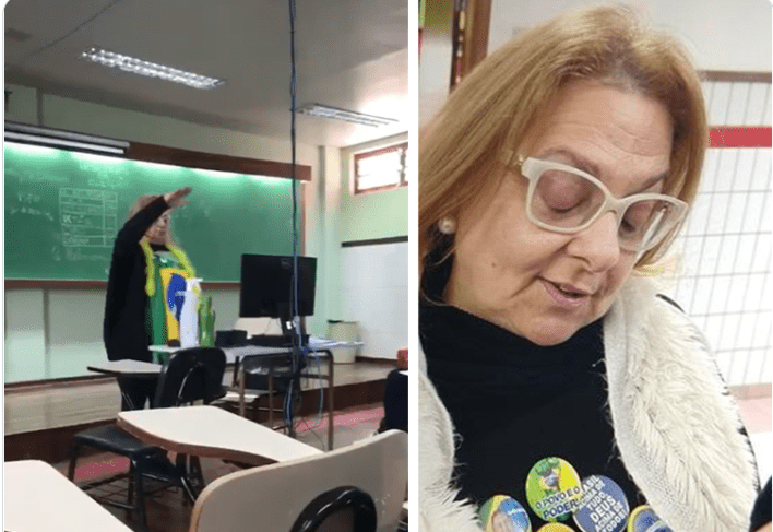 No vídeo, divulgado pela Revista Fórum, é possível ver o momento em que um aluno se afasta da mesa da educadora e, logo em seguida, ela leva a mão à testa e depois estende o braço, num gesto adotados pelos nazistas para saudar Adolf Hitler.