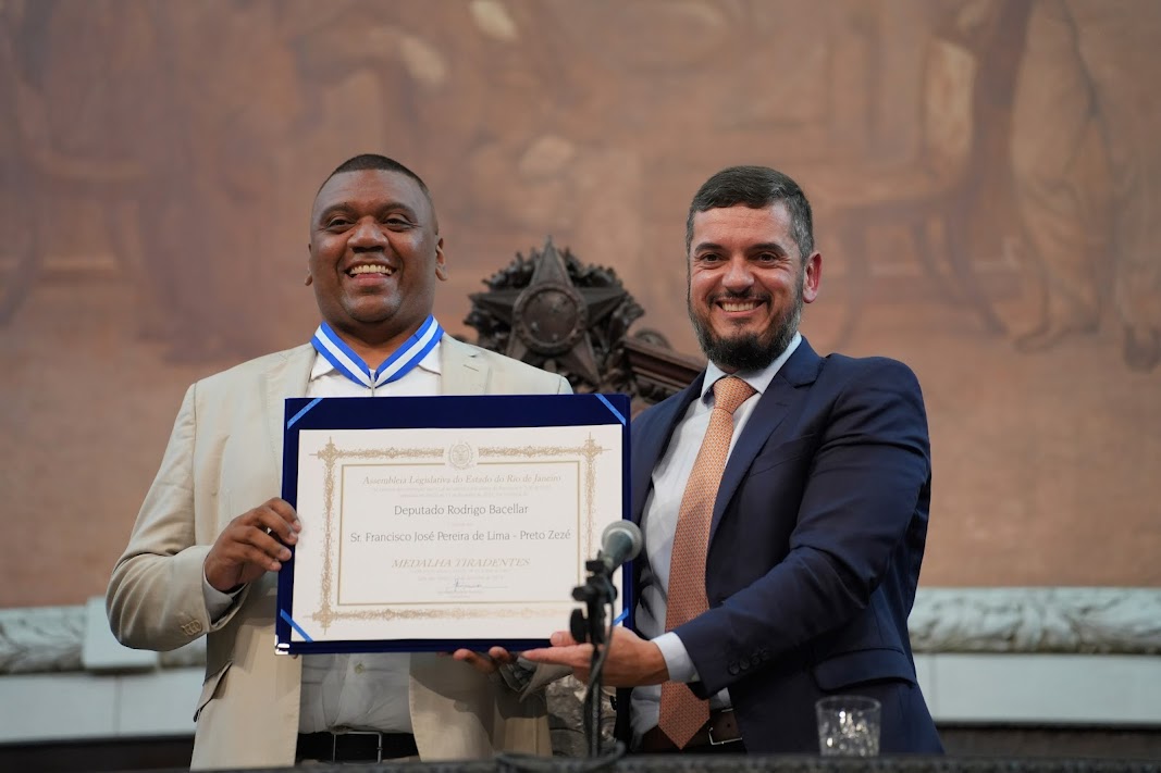“Vamos conversar com o governador Cláudio Castro e, com muito carinho, construir junto com a CUFA a criação da Secretaria das Favelas”, anunciou Bacellar durante a cerimônia de entrega da Medalha Tiradentes, maior honraria concedida pela Alerj. O evento, realizado no último fim de semana no Palácio Tiradentes, homenageou o cantor Belo, o ativista social Preto Zezé, presidente da CUFA, e o influenciador David Brazil.