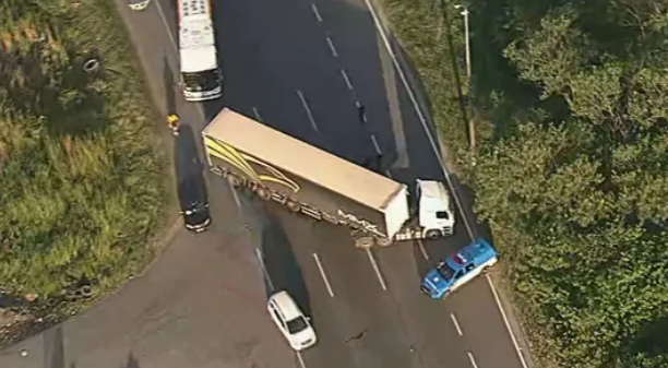 Avenida Brasil- Caminhão pega fogo na Av. Brasil, na altura da Estrada do Campinho, sentido Itaguaí.