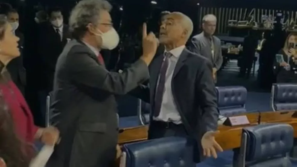 Os senadores Romário (PL-RJ) e Paulo Rocha (PT-PA) se desentenderam ontem durante debate sobre a regulamentação das atividades dos profissionais de educação física. Outros senadores precisaram apartar a briga, diante dos ânimos exaltados e dos palavrões ditos por Romário, que se ofendeu depois de Paulo Rocha ter apontado o dedo em riste para ele.