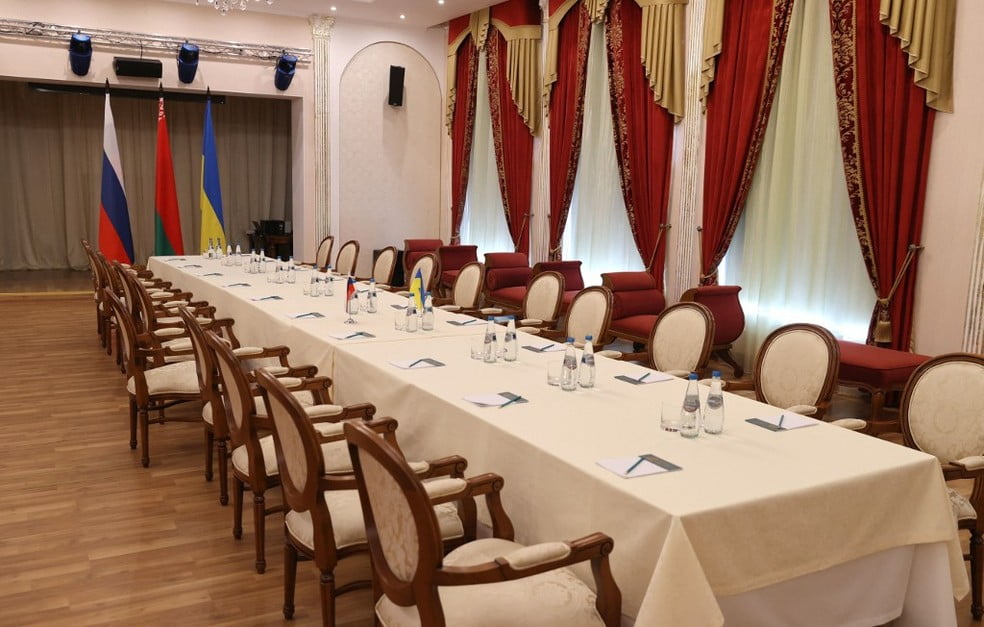 A delegação ucraniana chegou à fronteira do país com a Belarus para negociar com representantes russos, afirmou o gabinete da presidência da Ucrânia.