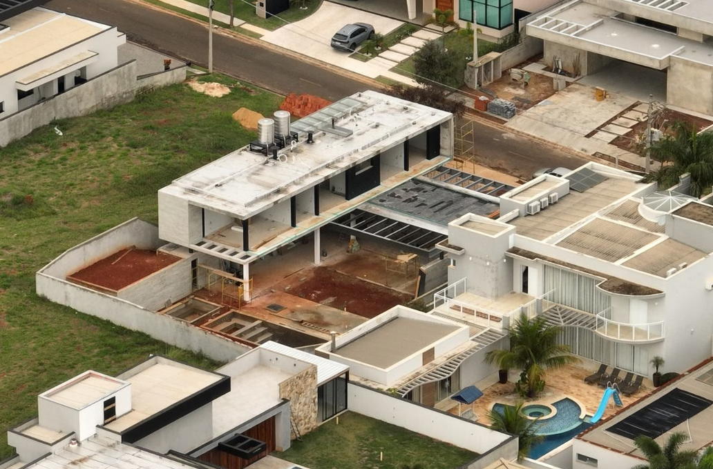 A propriedade, com 800 metros quadrados de terreno e 440 metros quadrados de área construída, fica em um condomínio fechado com estrutura de clube, incluindo quadras de tênis, piscina semiolímpica coberta, academia e um lago. Projetada com arquitetura moderna, janelões de vidro, acabamento em madeira cumaru e piscina privativa, a casa vem sendo erguida desde meados de 2023. No entorno, imóveis similares são vendidos por até R$ 4 milhões.
