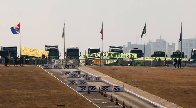 A intenção é, ainda, evitar que cenário ocorrido em 2021 se repita, quando caminhões ficaram estacionados na Esplanada, em frente ao Congresso Nacional (foto) e em direção ao STF.