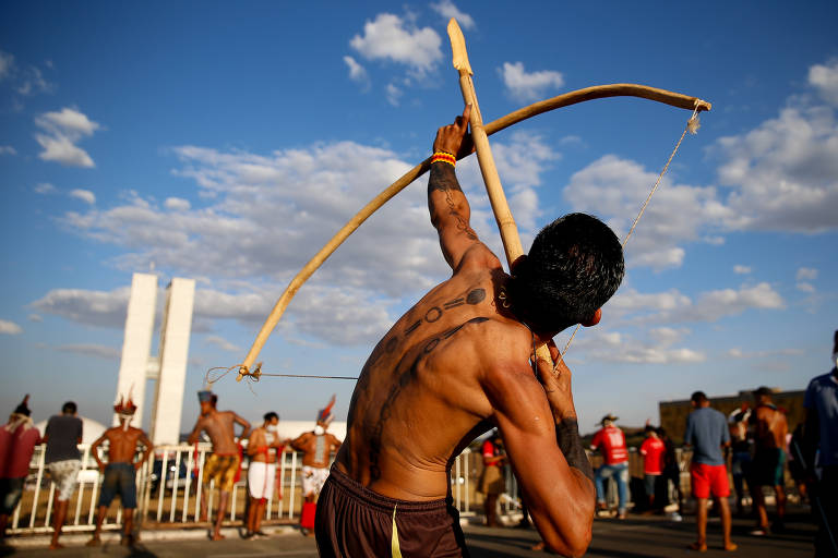 Mais de 600 indígenas estão em Brasília (DF) acompanhando o julgamento, que pode definir o futuro dos povos originários do país. Pelo marco temporal, indígenas só podem reivindicar terras que ocupavam em 5 de outubro de 1988, data da promulgação da Constituição.