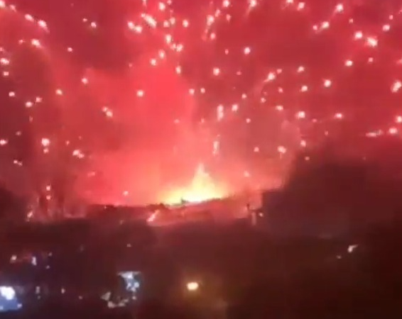 Imagens feitas por moradores registraram o momento em que o artefato atinge a fiação, provocando uma explosão que assustou quem passava pelo local. Assista: