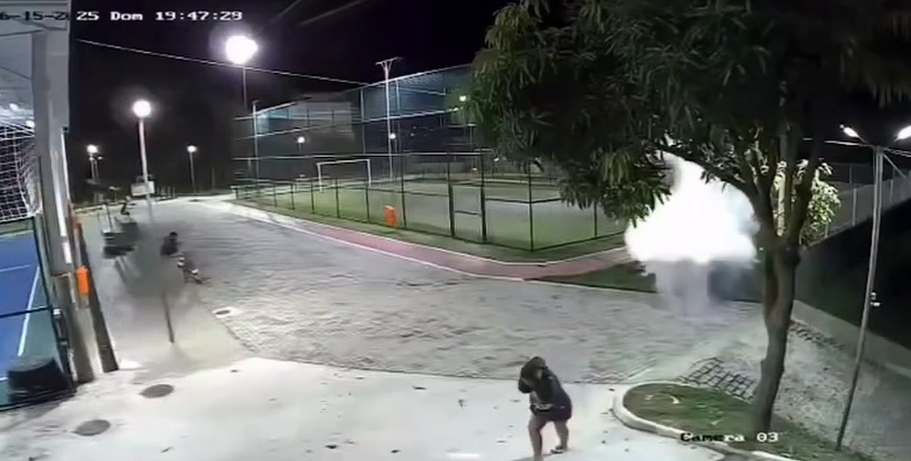 Imagens de uma câmera de segurança registraram o momento da explosão. O vídeo mostra um grupo de crianças correndo e gritando após a detonação, que ocorreu a poucos metros de uma delas. Assista: