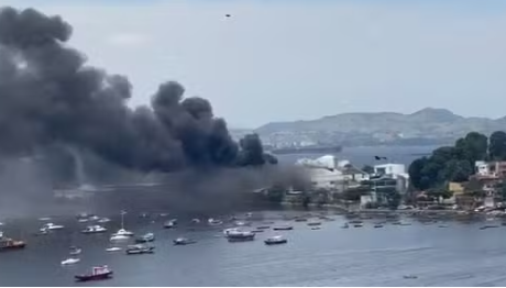 Incêndio atinge fábrica de óleo na Ilha do Governador.