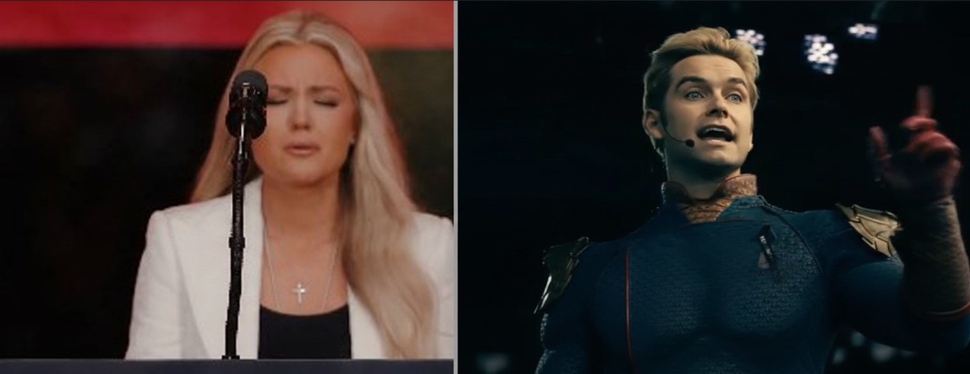 Nos últimos dias, um vídeo viral da viúva do ativista conservador Charlie Kirk tomou as redes sociais e acendeu um debate que ultrapassa o campo da política tradicional. Nas imagens, Erika Kirk aparece sendo recepcionada por uma grande plateia, adornada por efeitos pirotécnicos e uma música dramática de fundo, antes de se dirigir às câmeras com uma expressão grave e emocionada. A viralização foi imediata — e junto com ela, as comparações com a série The Boys.