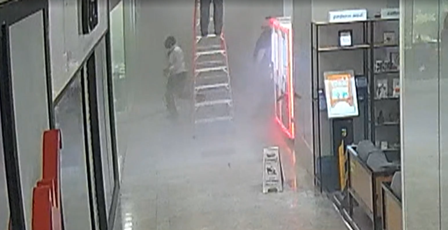 Outro segurança aparece orientando os clientes para que não usassem o elevador, que ainda operava normalmente. Depois disso, as lojas começaram a fechar as portas no subsolo, com o corredor sendo esvaziado.