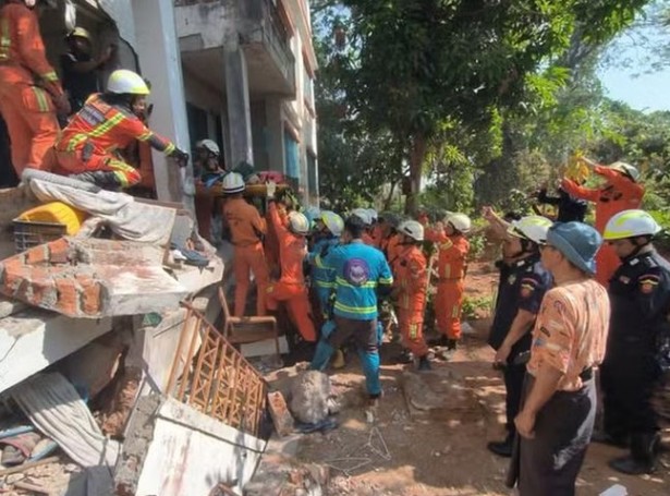 Uma equipe de resgate conseguiu retirar uma mulher de 63 anos viva dos escombros de um edifício em Mianmar. Ela ficou quatro dias soterrada depois do terremoto que devastou diversas regiões da… pic.twitter.com/Mg8SI6aPb9